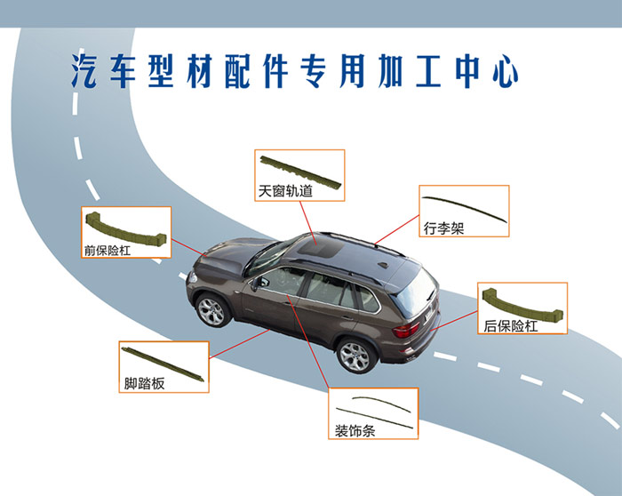 羅威斯鋁型材加工中心具有高速、高精度、穩(wěn)定性強(qiáng)等特點(diǎn),對(duì)于汽車行李架、天窗導(dǎo)軌、裝飾條、前后保險(xiǎn)杠、腳踏等具有良好的解決方案,為汽車配件加工提供強(qiáng)有力的支持。