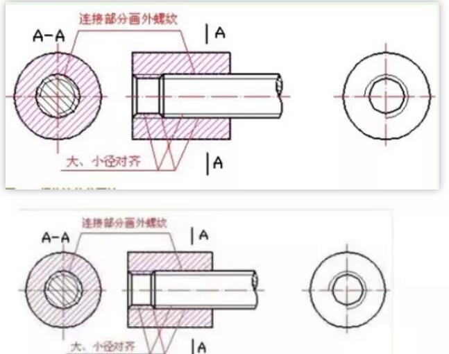 4、內(nèi)、外螺紋連接的畫法
