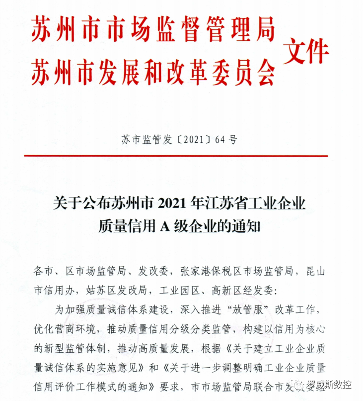 近日,江蘇省市場(chǎng)監(jiān)管管理局和江蘇省發(fā)展和改革委員會(huì)發(fā)布的《關(guān)于公布2021年度江蘇省工業(yè)企業(yè)質(zhì)量信用A級(jí)企業(yè)名單的通知》中蘇州昆山市共有28家企業(yè)在全省質(zhì)量信用等級(jí)評(píng)價(jià)中獲得A級(jí)。